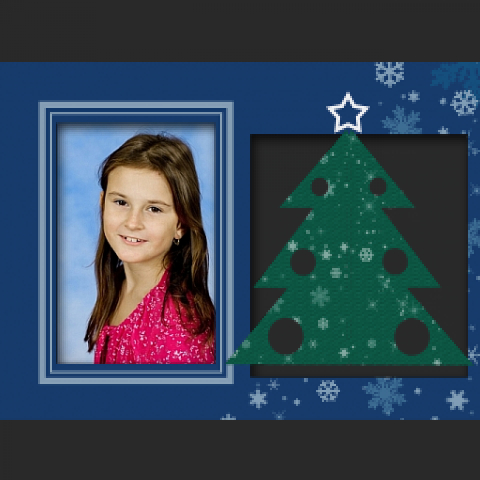 Portrétna fotografia rozmeru 10 x 15 cm so štylizovaným priestorovým vianočným stromčekom, ktorý slúži zároveň ako stojan.