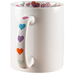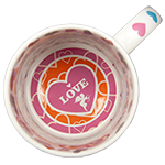 Biely lesklý keramický hrnček s dekorom LOVE. Hrnček má potlačené uško a vnútro v zamilovanom štýle. Objem 250ml.