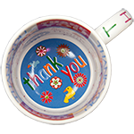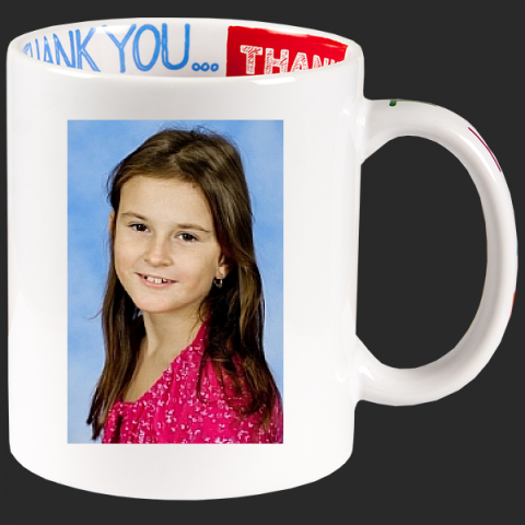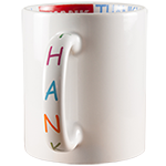 Biely lesklý keramický hrnček s dekorom THANK YOU. Hrnček má potlačené uško a vnútro v thank you stylu.Objem 250ml.