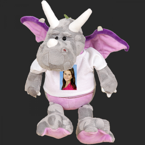 Veľká plyšová dračie dievčatko. Plyšák je príjemný na dotyk a oblečený v triku. Potlač je plnofarebná na triku. Výška 32 cm.Dodacia lehota 3-5 týždňov