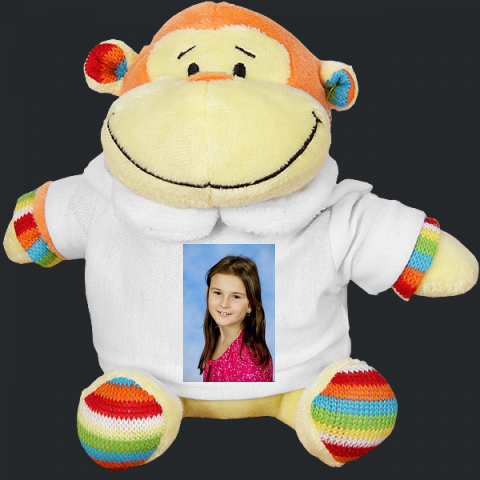 Mäkký plyšový opičák s polyesterovým tričkom a vašou fotografiou. Výška 25 cm