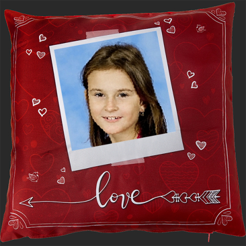 Saténový vankúšik vo farbe bordo, obsahuje poťah s predtlačeným vzorom s rozmerom 40x40cm a výplň. Samotný potlač je umiestnený v predtlačenom tvare. Vankúš je príjemný na dotyk. Predná strana vankúša je saténová a zadná je z bavlny. Uzatváranie na zips.